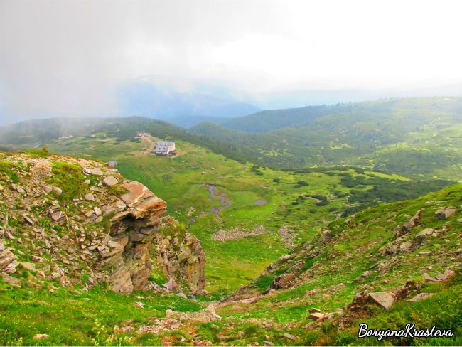 Неусетно достигам Окото – сякаш издълбано в лицето на планината. От едната му страна се мъдри купчина неразтопен сняг, а от другата стъпвам по зелена трева. Мъглата се спуска към него все едно го завива, като майка детето си. Наясно съм, че мечтаната гледка от върха, ще си остане само копнеж. Единственото, което ще намеря там е мъгла, но това не е причина да не стигна до края. Леви-десни – продължавам борбата с лошото време. То обаче не може да помрачи преживяването ми, защото в планината всичко е хубаво. Ако бях в града, може би щях да кротувам на дивана, да гледам през мокрия прозорец и да твърдя колко обичам дъждовните дни. Но ето ме, аз съм тук и продължавам да вървя мокра и кална. Май това е по-истинската любов…като тази на децата с цветните дъждобрани. Става ми топло от тази мисъл и тайничко се усмихвам на детето в мен.