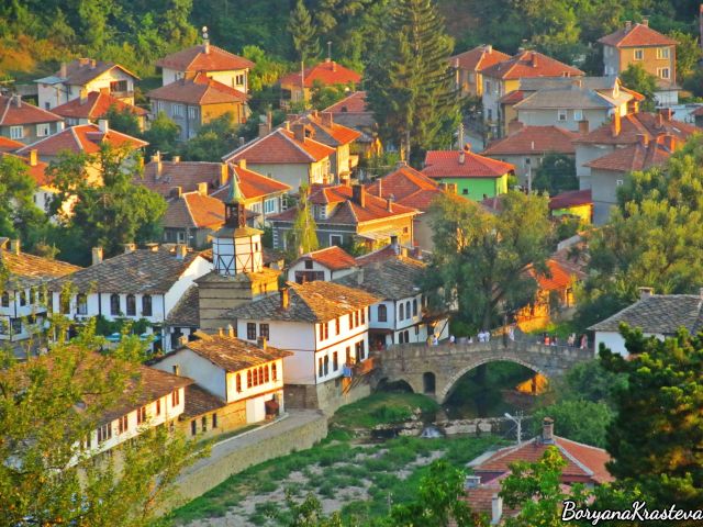 След икиндия продължавам разходката си по кривите улички. Минавам по гърбавия мост и се заглеждам в спокойните води под него. Като очи на мълчалив човек, те събират цветовете на града, без да издават тайните им. Очертанията на близките къщи с мънички прозорчета се размиват във водата, като в картина на импресионист. А памуковите облаци спокойно плават по повърхността ѝ. Преминавам от другата страна и излизам на площада, облян в златна светлина. Само две гълъбчета прелитат ниско над него и после се скриват в клоните на най-близкото дърво. Вървя по нагорещените каменни плочи и спирам пред оградата от ковано желязо на църквата „Св. Архангел Михаил”. Над приведения ѝ покрив се издига дървена камбанария, а в двора разцъфтяват ситни цветчета. Съществуват предания, че вкопаният в земята каменен храм е построен още по времето на цар Калоян.
