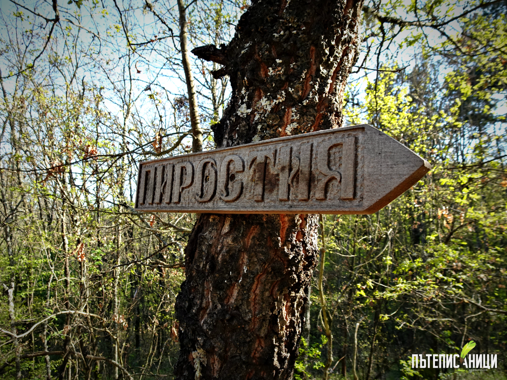 Стигахме до една вила и двор, пълен с фиданки. Малко след него оставихме колата, точно където пътят се разклонява на две – наляво и надясно. Левият път имаше някаква маркировка, която ние решихме, че ще последваме, нищо, че човекът ни каза на държим десния път! Голяма грешка! Хора, не правете като нас! На разклона хванете ДЕСНИЯ път, за да стигнете възможно най-бързо и безболезнено до „Пиростията“. Той е с дължина 1,5 км, на места има табели, а маршрутът е много лек.