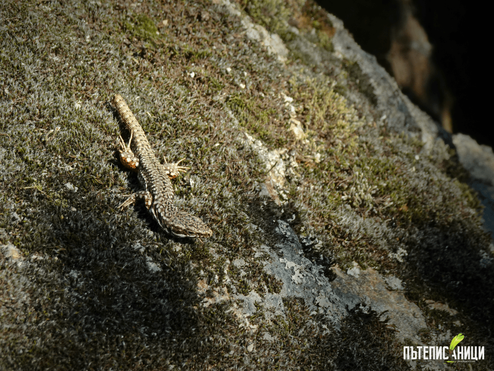 Камъните се намират насред гората и ние прекарахме доста време на тях. Едно, защото бяхме уморени от прехода, друго, защото беше много приятно да стоим върху тях. Дори си имахме и компания, ето това гущерче, което чудесно позираше за снимки.