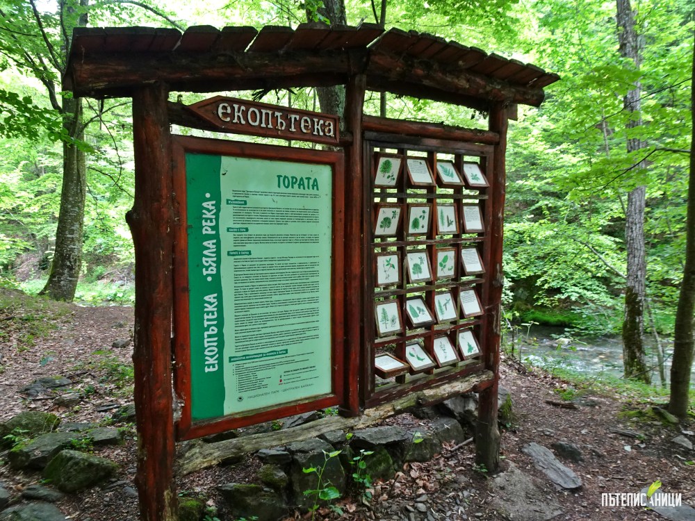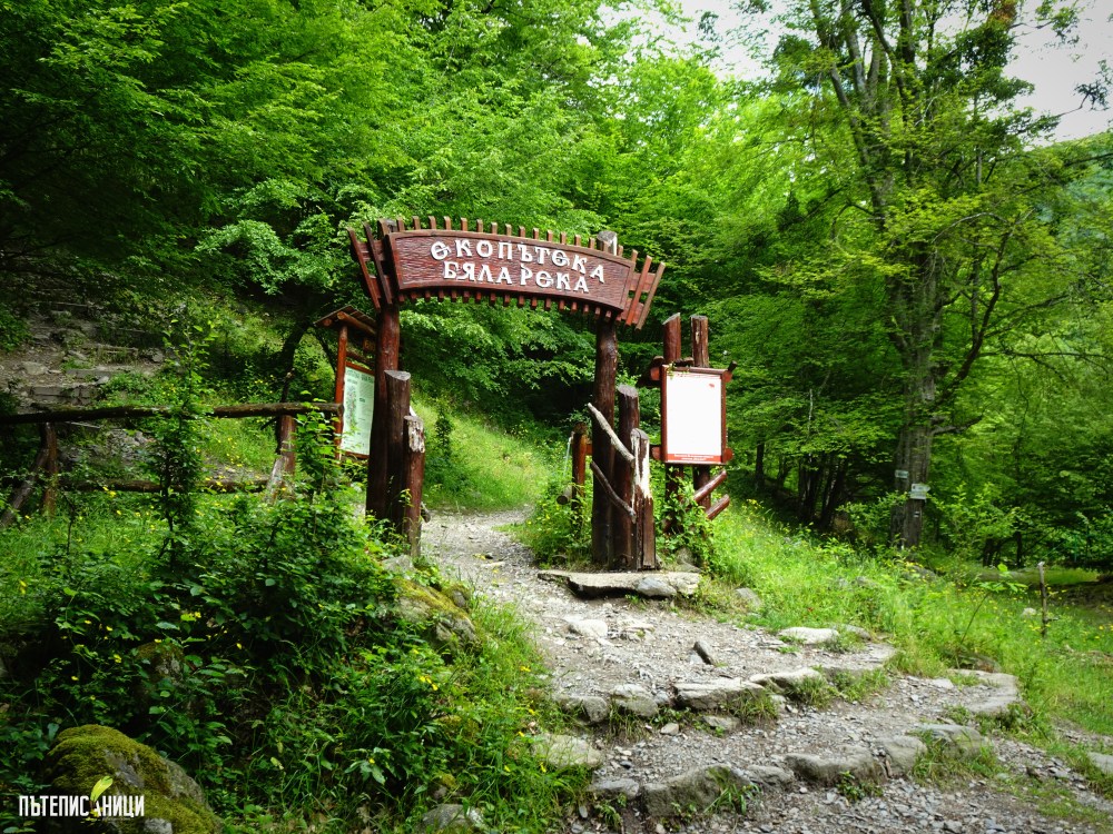 Скоро стигаме и до официалното начало на екопътека Бяла река. Минаваме под арката и започва леко изкачване. Навлизаме в ждрелото на реката.