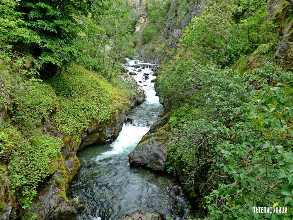 Стигам и до най-тясната част на ждрелото, където двете му страни почти се докосват. Между тях препуска водата – буйна и неспирна. Във въздуха се носят водни капчици, които се стопяват по кожата ми. Скалите образуват интересни форми, които се скриват под килим от зелен горски мъх.