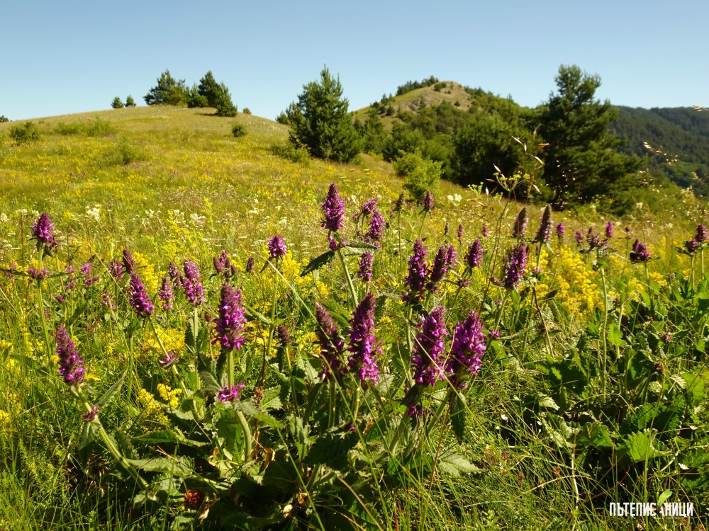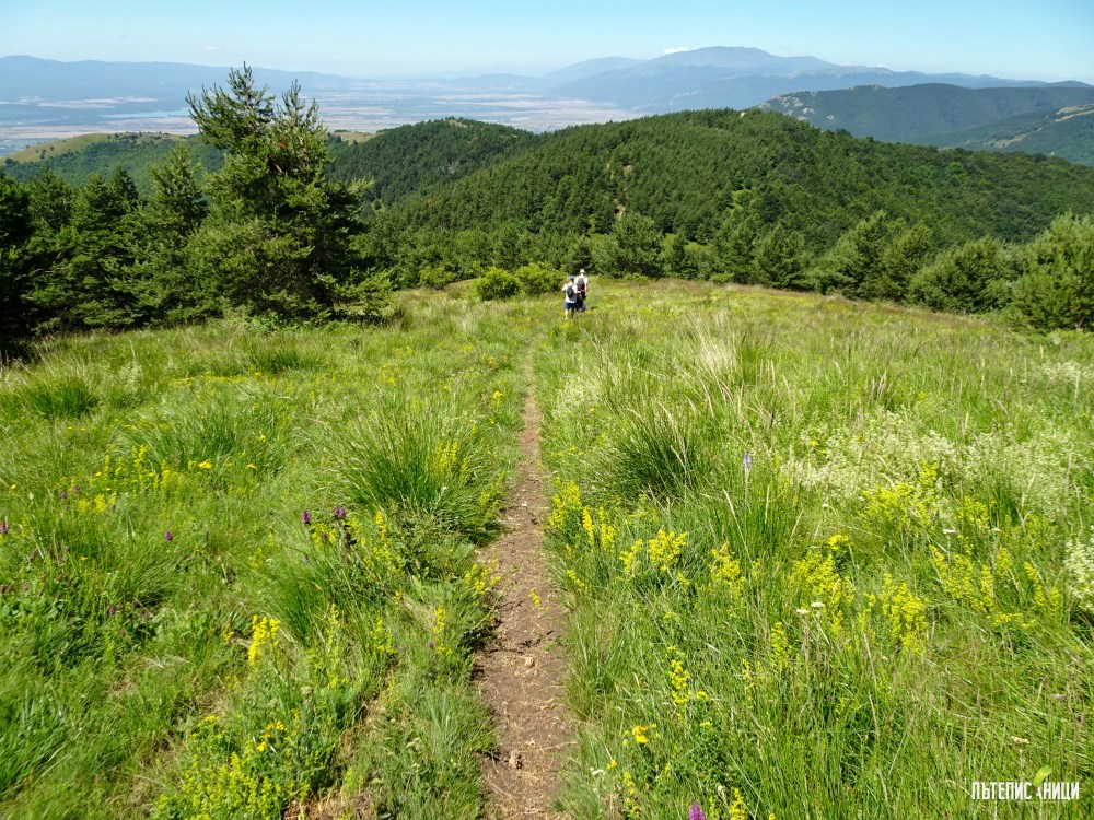 Преминаваме през дъхави поляни, отрупани с билки, накичени с пеперуди и най-различни насекоми. Жужат и жуженето им се превръща в песен, която се търкаля по баирите. Пейзажът прелива от цветове, звуци и аромати. Всичко се слива в неповторима симбиоза. Виждам върха в далечината и дърветата, които се поклащат като море. Времето е ясно, което е добре за снимките. После обаче щяхме много да съжаляваме, защото слънчевото изгаряне ни беше в кърпа вързано. Разбира се, тогава още не го знаехме и просто се наслаждавахме на времето в планината.