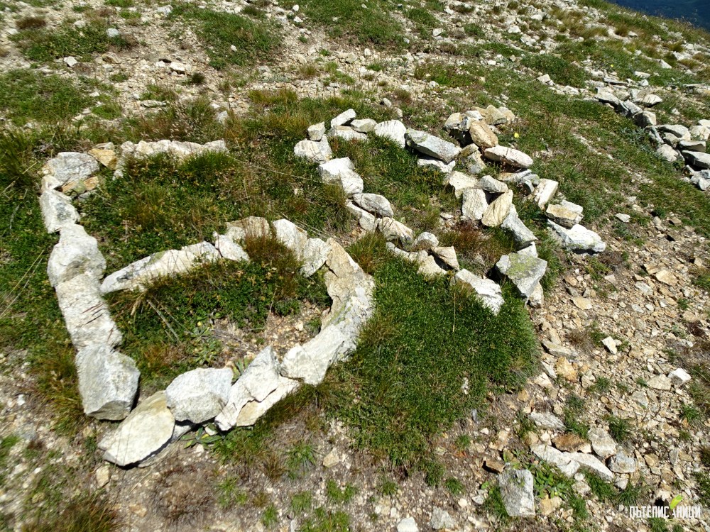 Виждам надписа „Бог е любов“, изписан с камъни на върха. Грижливо попълнихме местата, на които камъните се бяха разместили или съвсем липсваха.