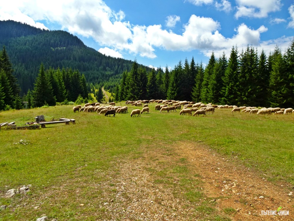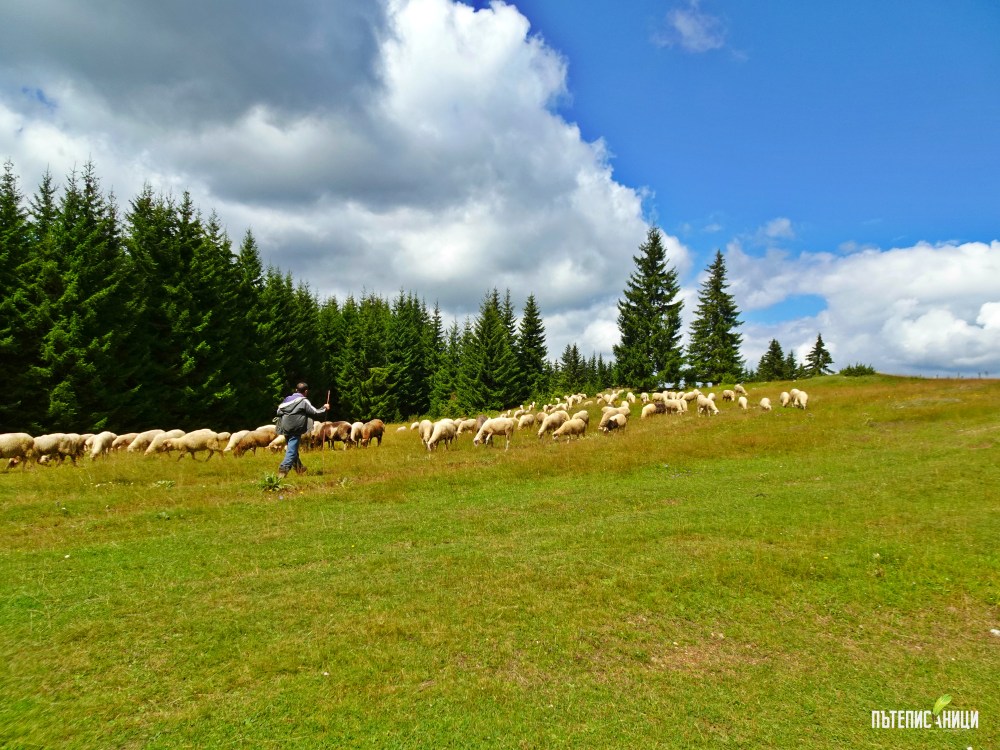 Както ви казах, преди последното изкачваме, има чешма с вода. Накрая остава да прекосите една тучна поляна и сте в хижата. Ние имахме късмета да се срещнем с пастир и стадото му, което огласяше планината със звънките си хлопки!