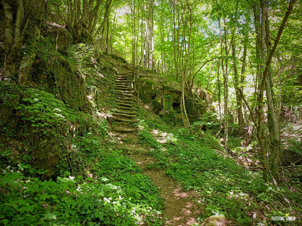 Следва спускане по дървени стъпала към коритото на реката. Нямам търпение вече да се скрия от горещите езици на слънцето. Едва краят на май е, а се усеща като средата на август. Шарената сянка в далечината ми изглежда като оазис. Пускам се надолу по пътеката и чувам песента на реката. Около мен не спират да се редят камъни със странни форми, които сякаш всеки момент ще оживеят. Мястото прилича на приказна гора!