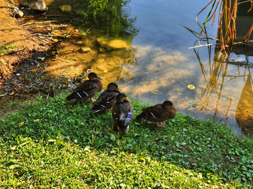 Избираме си пейка на шарена сянка и сядаме, за да погледаме танца на патиците. Тук времето тече сякаш на забавен кадър. Виждам баба, дядо и двете им внучета, които са се надвесили над езерото от терасата на снек-бара, и хранят рибките. Всички се смеят, а малчуганите се кокорят с учудени очи. Радват се и смехът им бликва като река, която помита всички грижи със себе си.