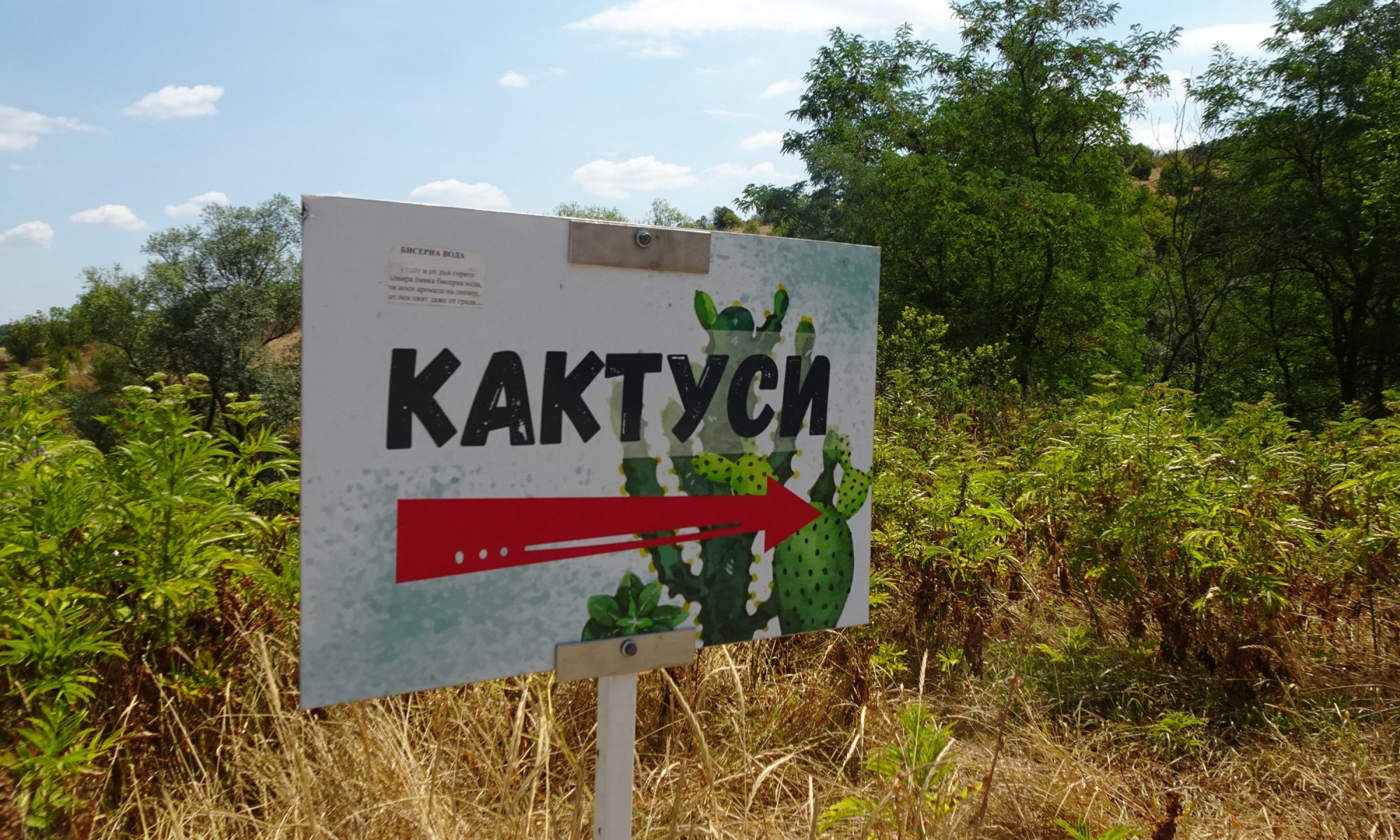 Връщаме се на табелата „Кактуси“ и се изкачваме по още по-тясна пътечка. Сред добре познатия пейзаж на родния Балкан се появяват необичайни растения – диворастящи кактуси. Те са от вида Опунция, родината им е Мексико, но как ли са се озовали по нашите земи?