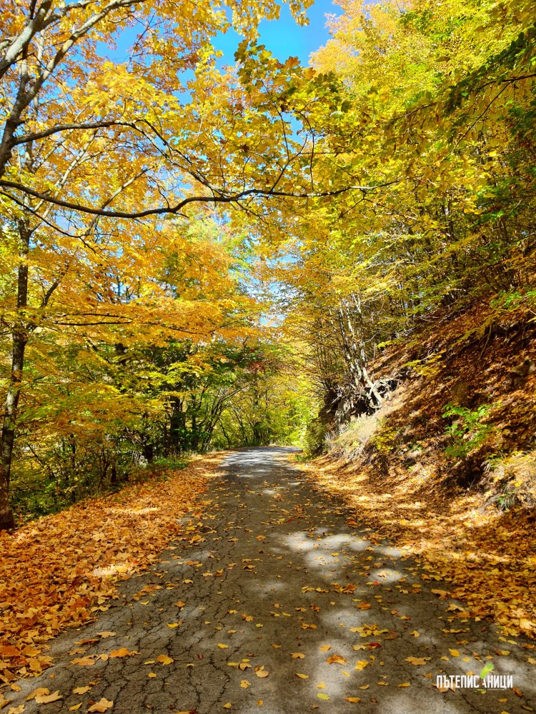 Връщаме се по обратния път и събираме слънце. Толкова е тихо и спокойно, че не ми се слиза в градската джунгла. Тук се чувствам извън времето. Чувам по-ясно ударите на сърцето си, хващам мислите си и дишам с лекота. Есен е. Двама сме. Това ми е достатъчно, за да облека този миг в обич.