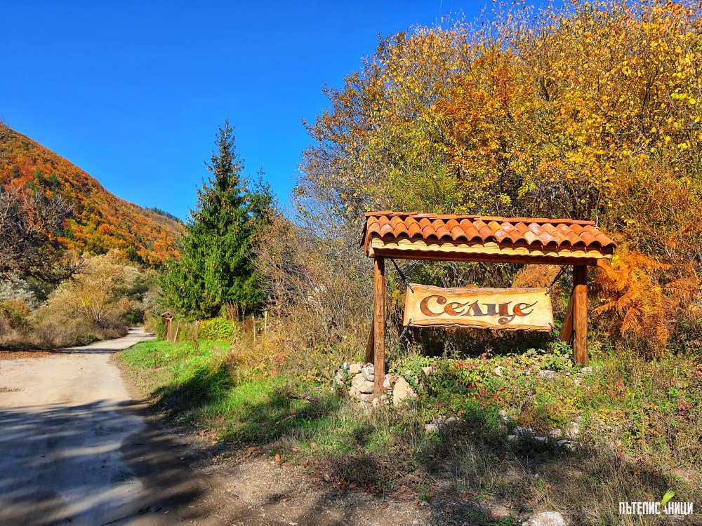 Селце – името на селото виси върху огромна дървена табела, прихваната с четири синджира от четирите ѝ страни. Слънцето се показва щедро и обагря планината в най-различни цветове. Не се мяркат хора, нито се чуват. Селото ни посрещна със спретнатите си къщи. Макар да е далеч от града и от обхвата на мобилни оператори, си личи, че тук често идват хора. Грижат се за дуварите, градините и къщите си.