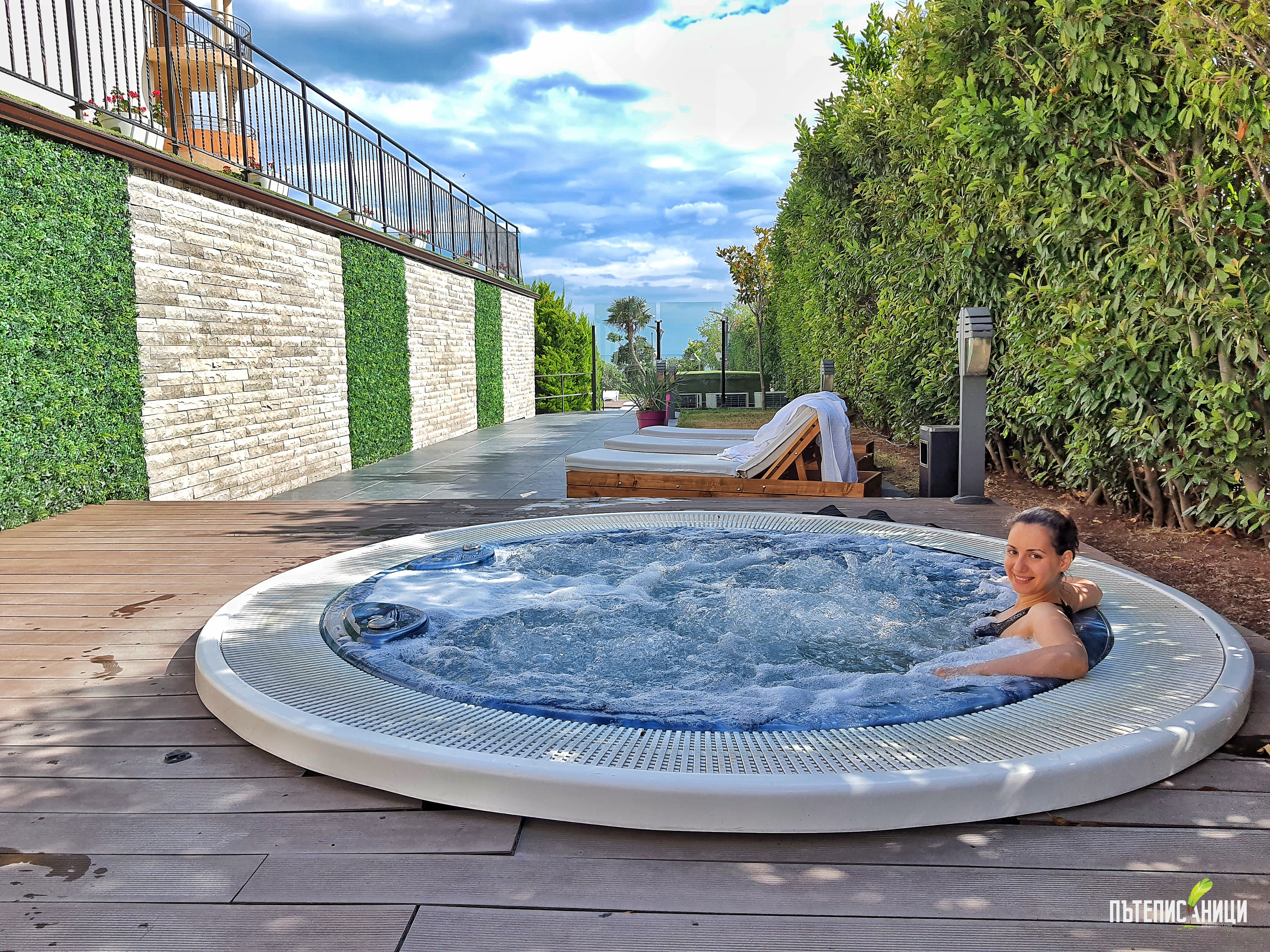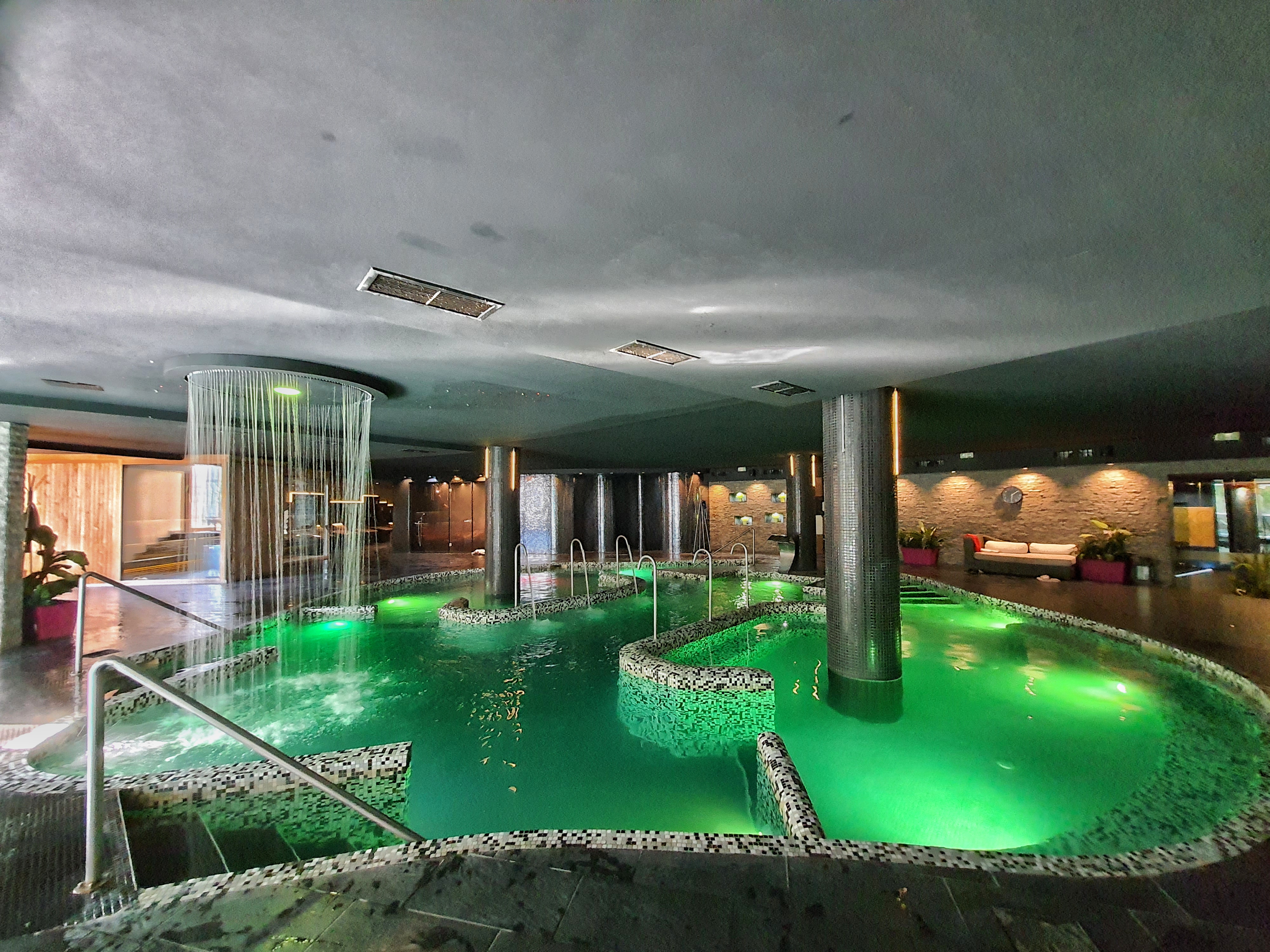 Веднага след настаняване се насочваме към СПА зоната в Гранд Хотел Свети Влас. В ранния следобед няма много хора, защото повечето са на плаж или се излежават около външния басейн. Най-много ми хареса акватоничният басейн. Това е закрит басейн с постоянна температура 36° С, а най-интересно е, че има насрещно течение, което осгурява много приятен масаж на тялото.