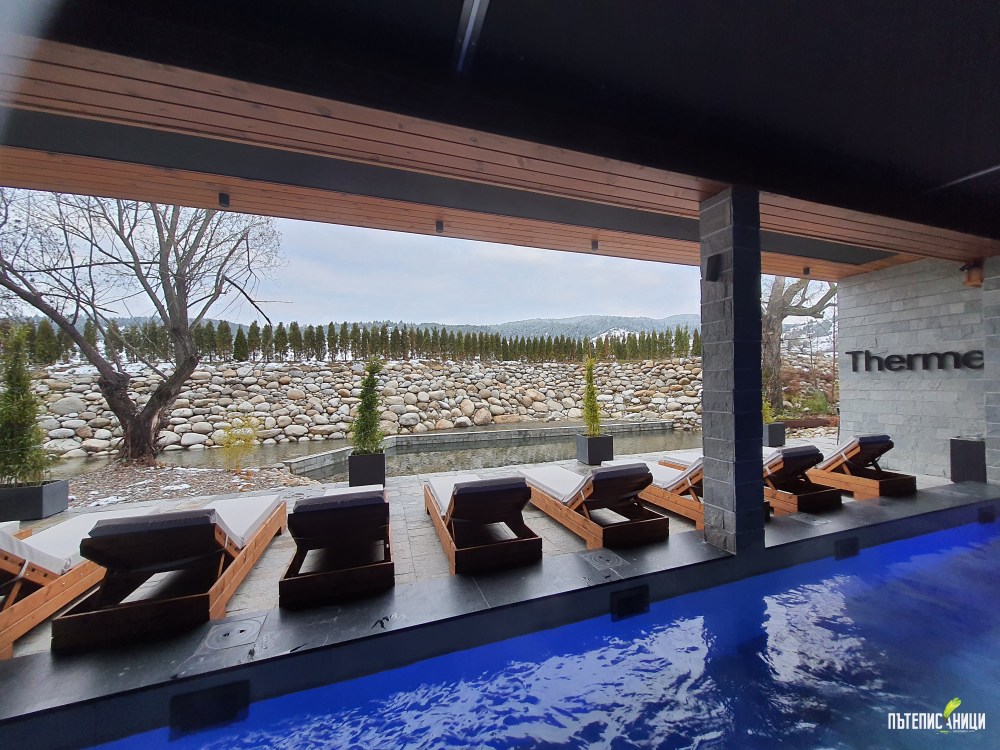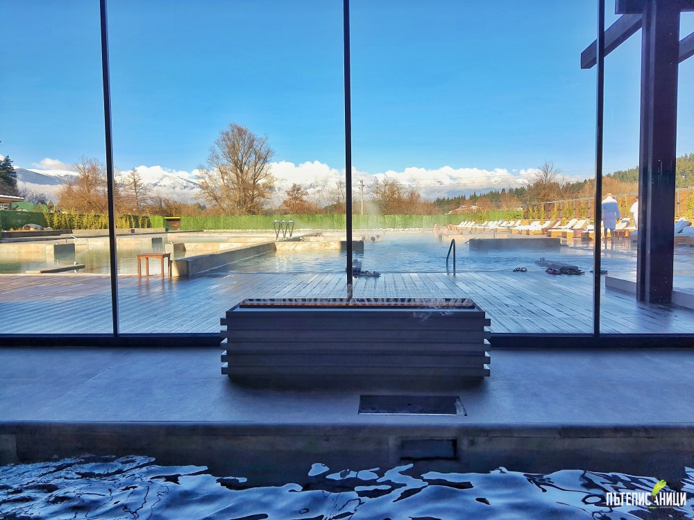 В останалата част от СПА центъра, който може да посетите и с децата си, има още един голям топъл басейн, сауни, лежанки, на които да си натоплите гръбчетата и моята любима ароматна парна баня. На разположение на гостите в СПА центъра се предлагат чай, плодове, плодова вода. По всяко време може да си вземете питие от някой от баровете и да му се насладите край басейна или външните топила. Да, тази част на СПА центъра също има такива с топла вода. Харесва ми това, че са някак по-закътани, а точно пред теб тече река Конешица.