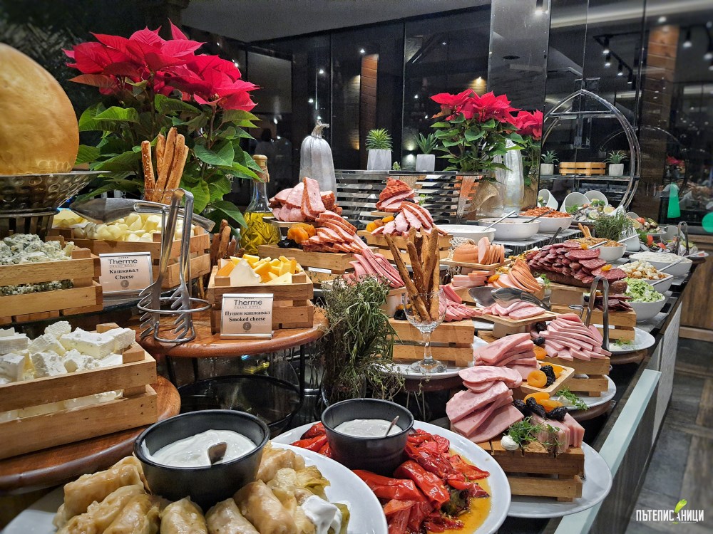 Обядът (както закуската и вечерята) се сервират в огромния ресторант All Day Restaurant Therme. Концепцията за бюфет тук е разгърната по много елегантен начин. Разнообразието от храни е огромно, но по-впечатляващото е, че всичко е прясно и изключително вкусно.