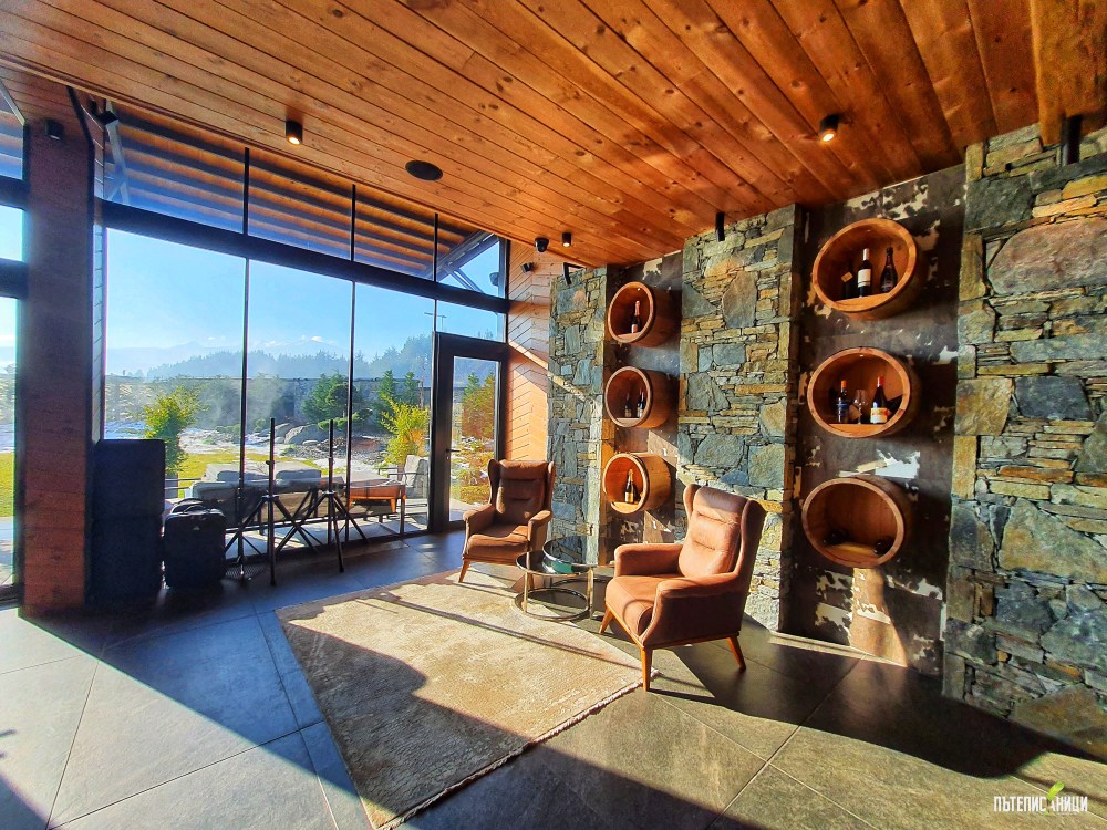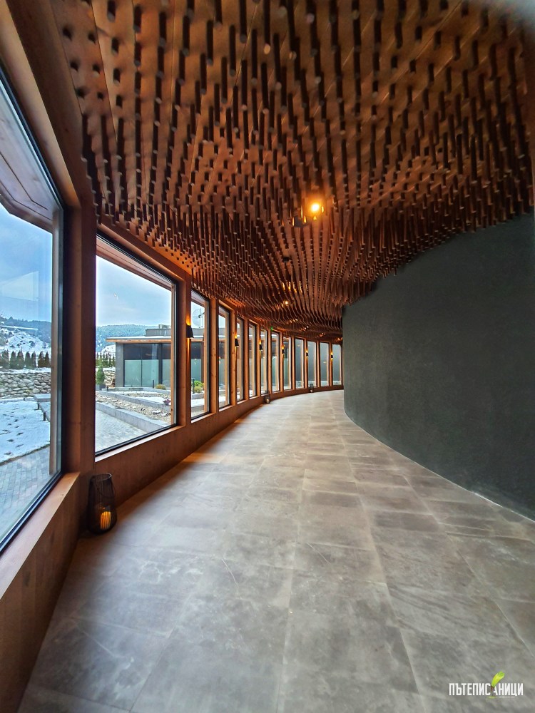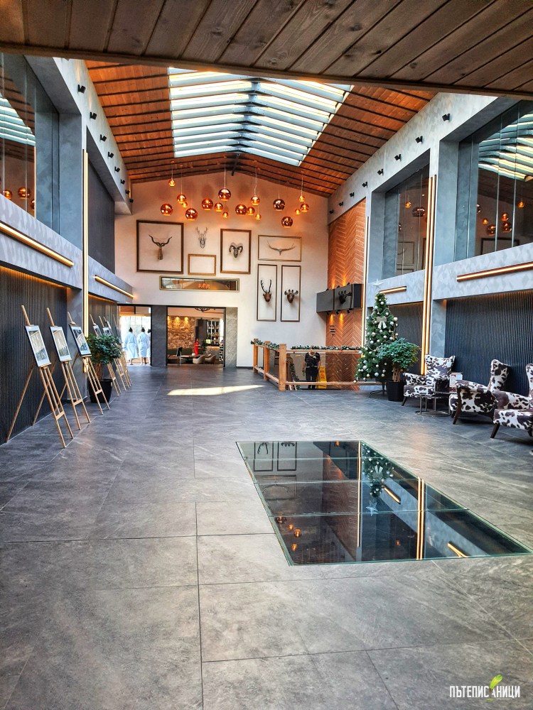 Хотелът е толкова голям и има толкова много места, които да посетиш, че през първия ден ми трябва известно време да се ориентирам. Това, което веднага ми прави впечатление, е естественото дърво и камък, заложени навсякъде в интериора и екстериора. Стилът много напомня на луксозна алпийска хижа, в която хем е уютно, хем е изключително просторно, интересно и винаги има какво да правиш.